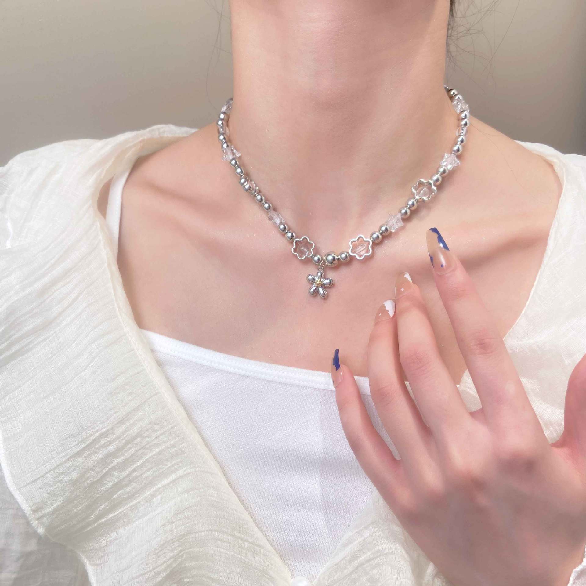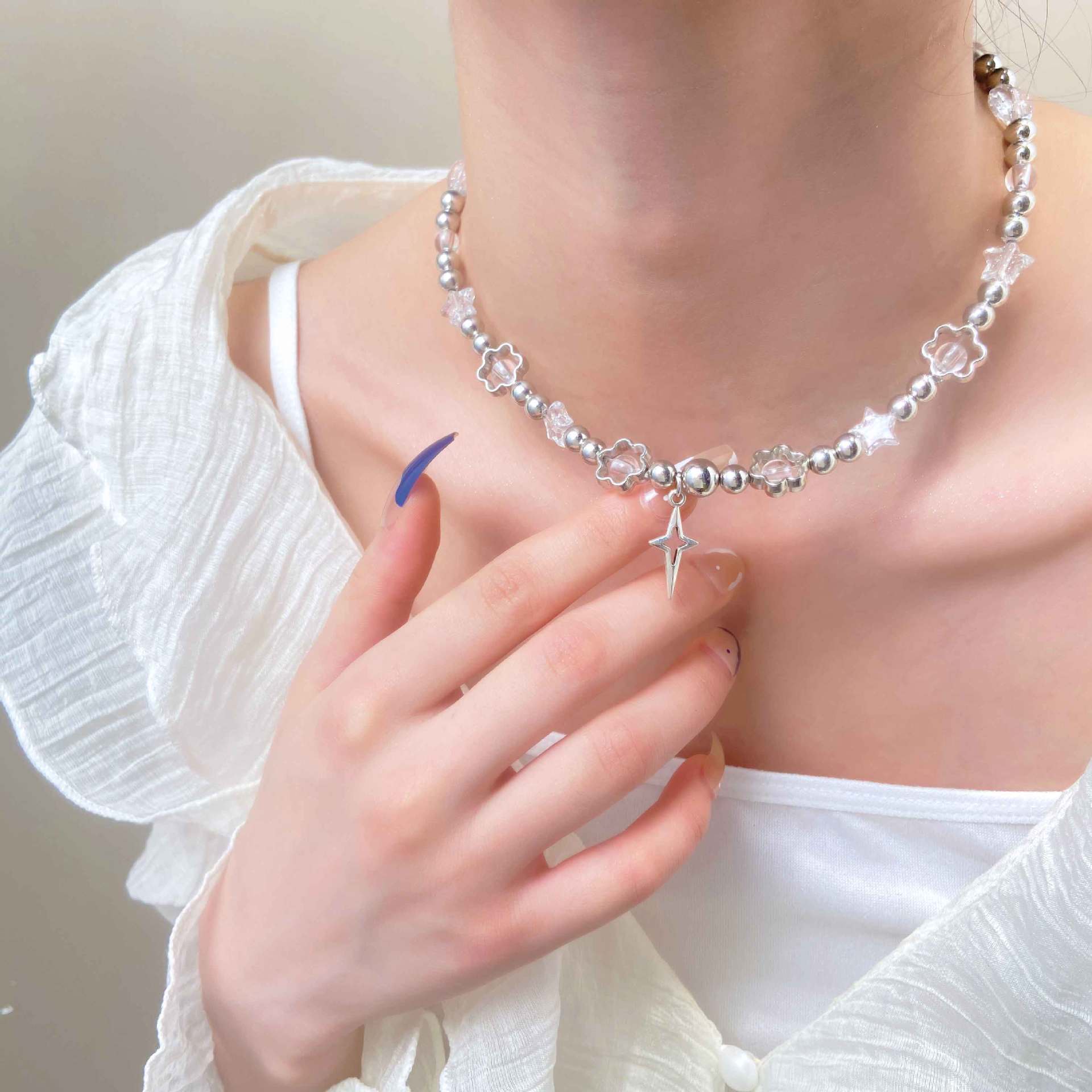 Collana con ciondolo a forma di farfalla, stella, croce, cuore e fiore in metallo Y2K, perle acriliche