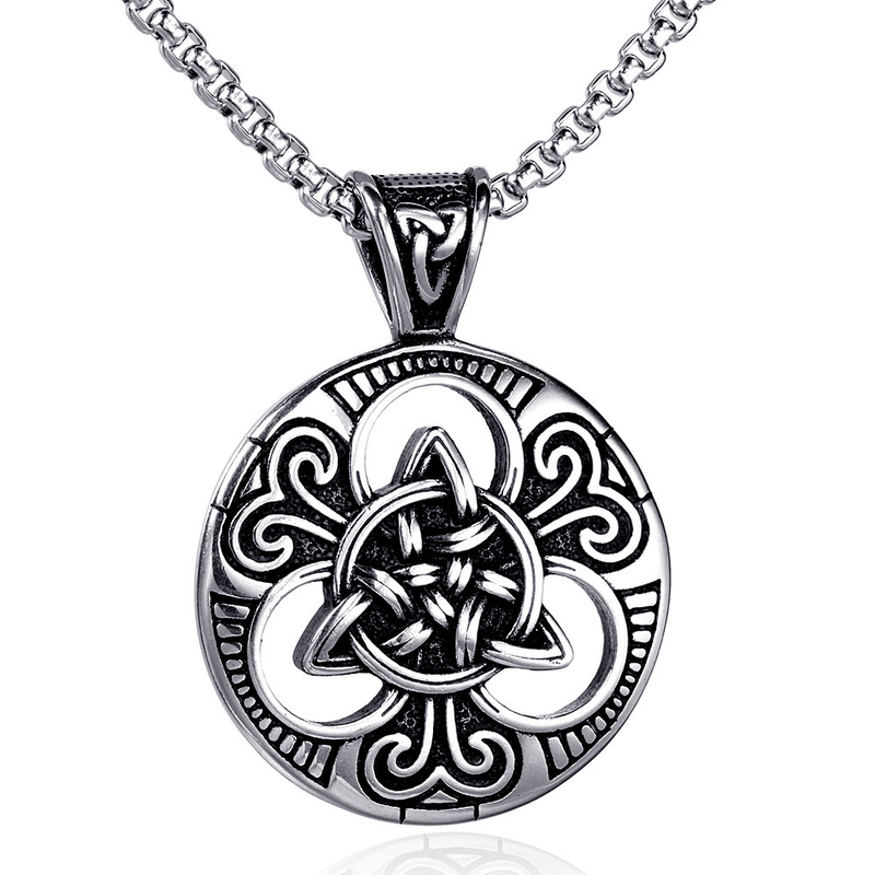 Collana con ciondolo a forma di nodo concentrico rotondo irlandese punk maschile alla moda con catena in acciaio inossidabile