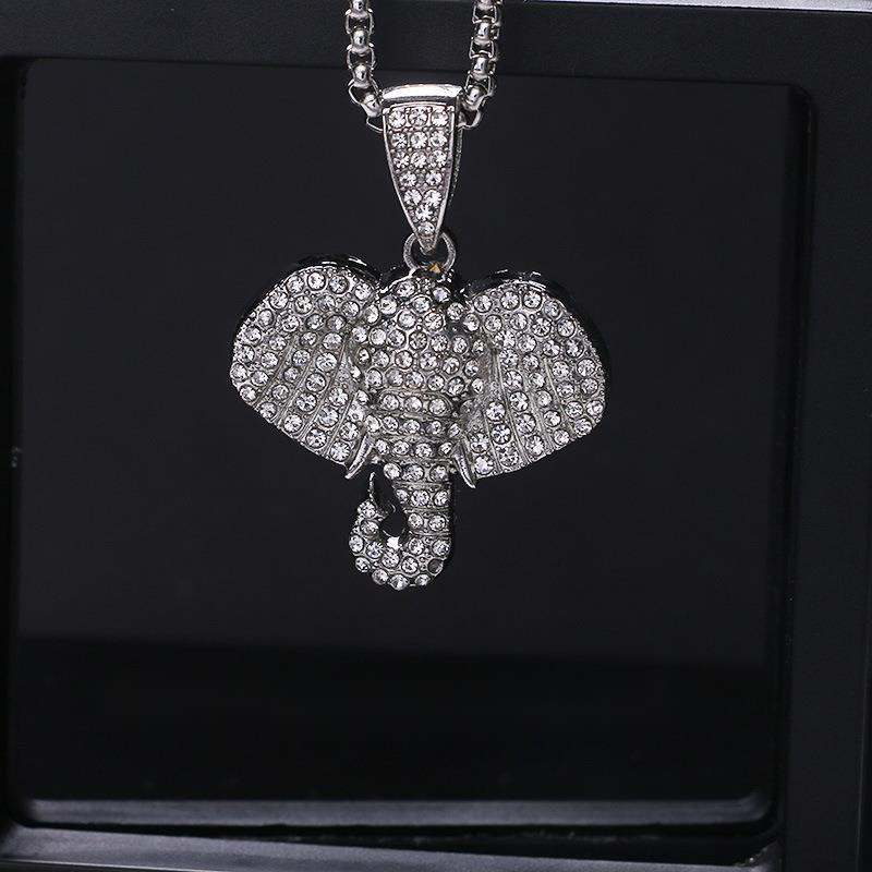 Collana con ciondolo a forma di testa di elefante con diamanti pieni, minimalista e di lusso, per uomo e donna, versatile per tutti i giorni