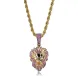 Collana con ciondolo a forma di testa di leone Hip Hop TopBg, da uomo, in oro 14k, con ciondolo a catena in corda.