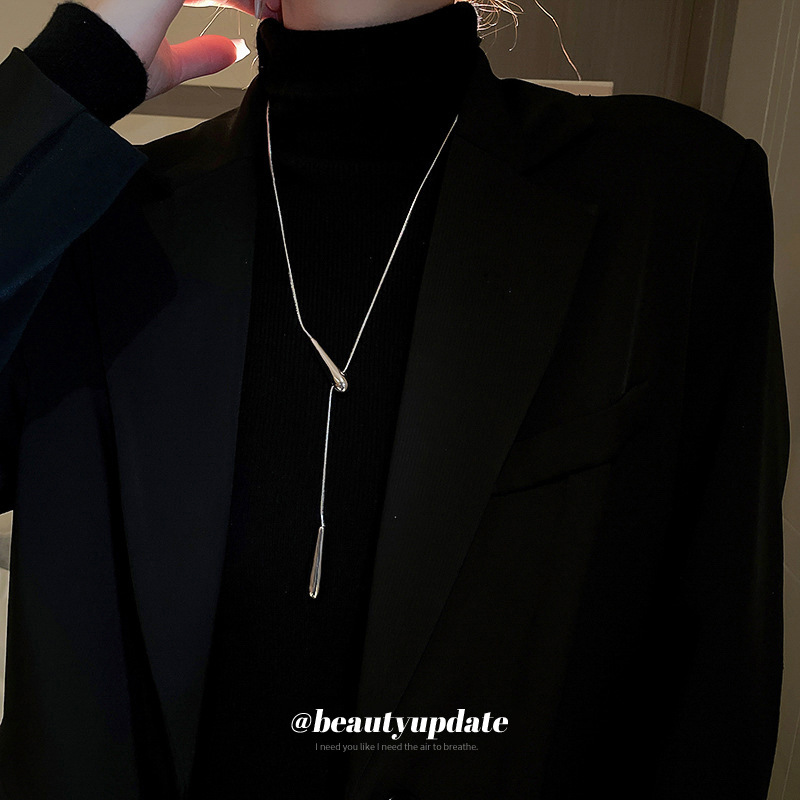 Collana con ciondolo a goccia d'acqua geometrica in stile freddo e indifferente, nicchia del temperamento, catena per maglione di alta qualità,
