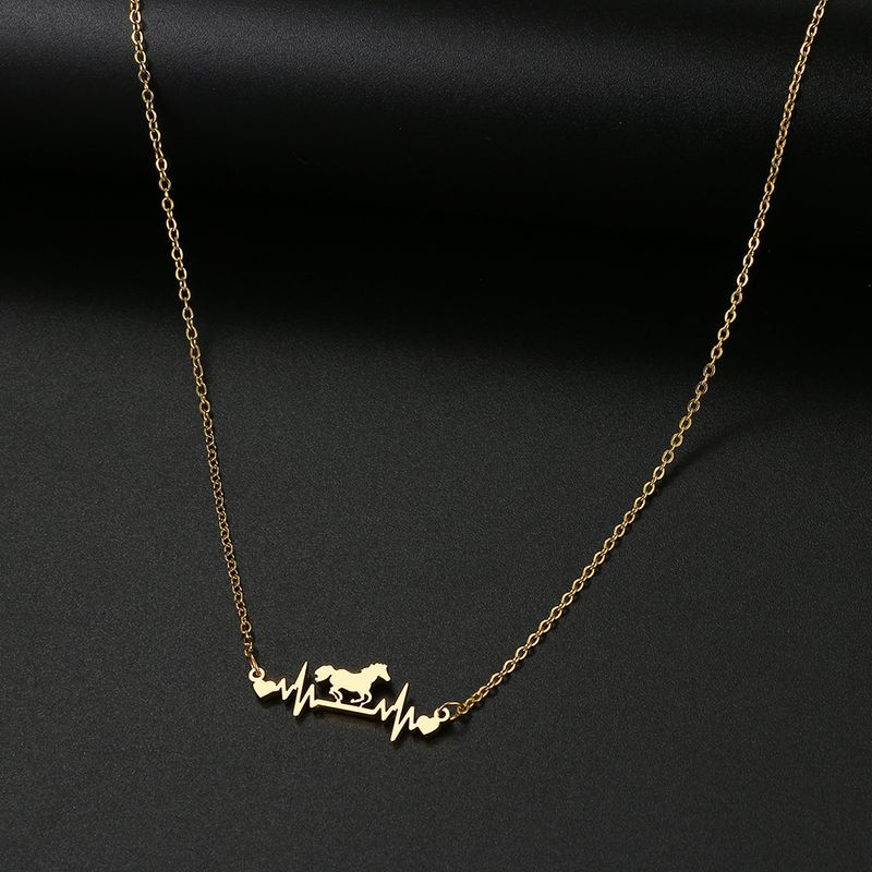 Stainless steel necklace, cute horse shaped electrocardiogram pendant necklace, fashionable women's pendant necklace, jewelry, the best gift for parties