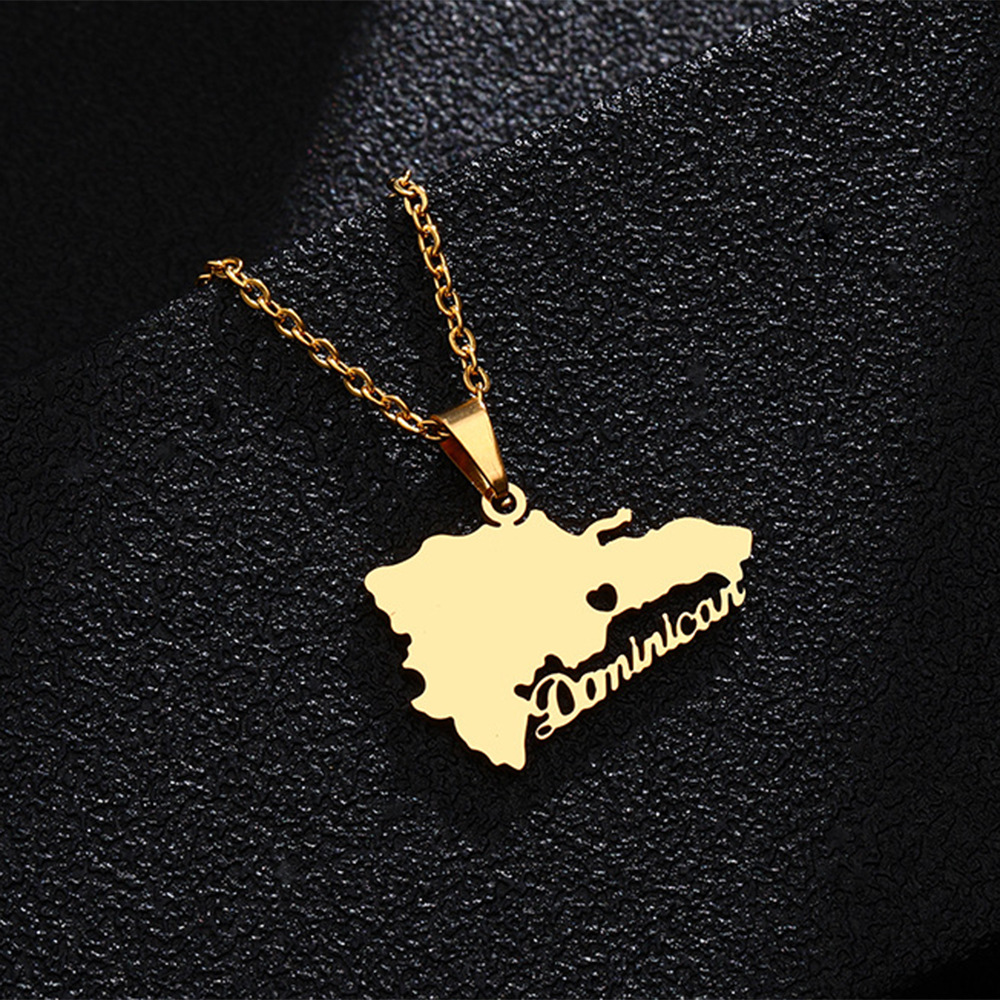 Collana con ciondolo in acciaio al titanio con mappa dominicana per uomo e donna, collana di coppia in acciaio inossidabile, accessori di tendenza