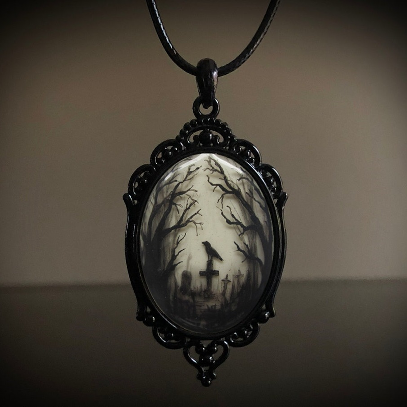 Collana con ciondolo in vetro a forma di croce di corvo gotico Chencui, moda, vendita calda, nuovi gioielli