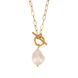 Collana con ciondolo versatile alla moda da donna in acciaio inossidabile con perle d'acqua dolce barocche e catena a graffetta