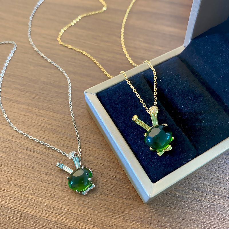 Fashion Cute Green Glass Bunny Necklace for Women, Niche Simple Design, Internet Celebrity Collarbone Chain Jewelry