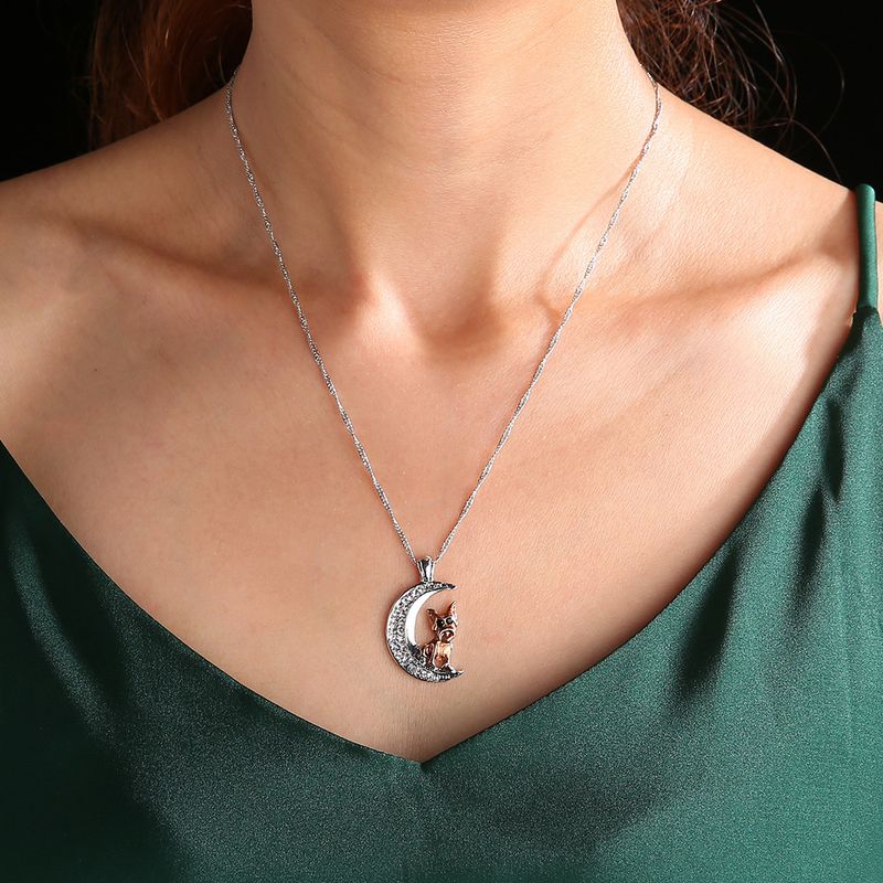 Collana con diamanti a forma di luna con incisione personalizzata di gioielli per animali