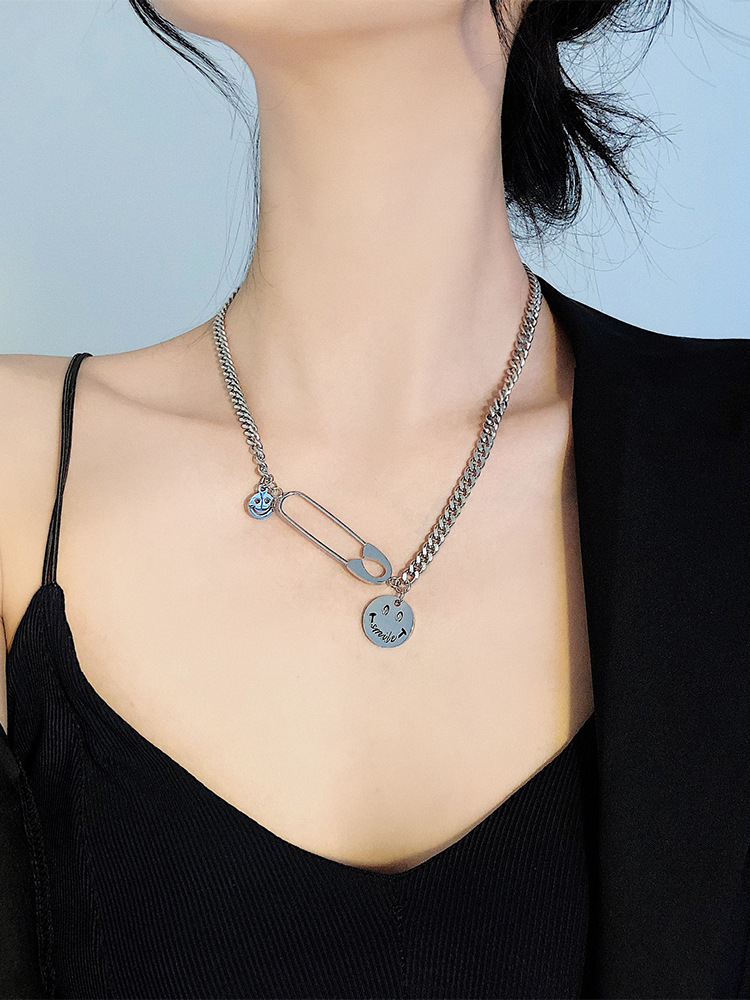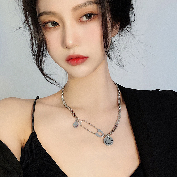 Exaggerated Smiling Face Necklace, Female Instagram, Hip Hop, Unique Design, Long Style, New Trendy Autumn/Winter Sweater Chain, Titanium Steel