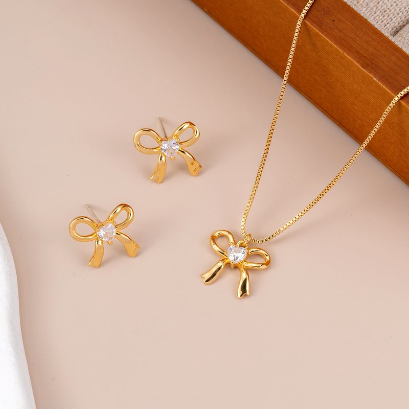 Fashion Bowknot Earrings Necklace Set Hollow Inlaid Diamond Earrings Silver Needle Exquisite Pendant