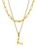 Collana con iniziale a strati in oro Laatikui per donna, ciondolo con lettera intrecciata 3D, catena a graffetta, girocollo a strati con nome L