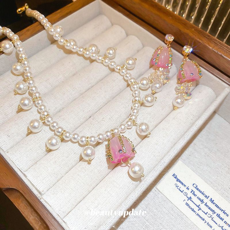 Collana con orecchini in argento con diamanti intarsiati, zirconi e perle di cristallo, design di nicchia, luce per le orecchie, gioielli di lusso di alta gamma
