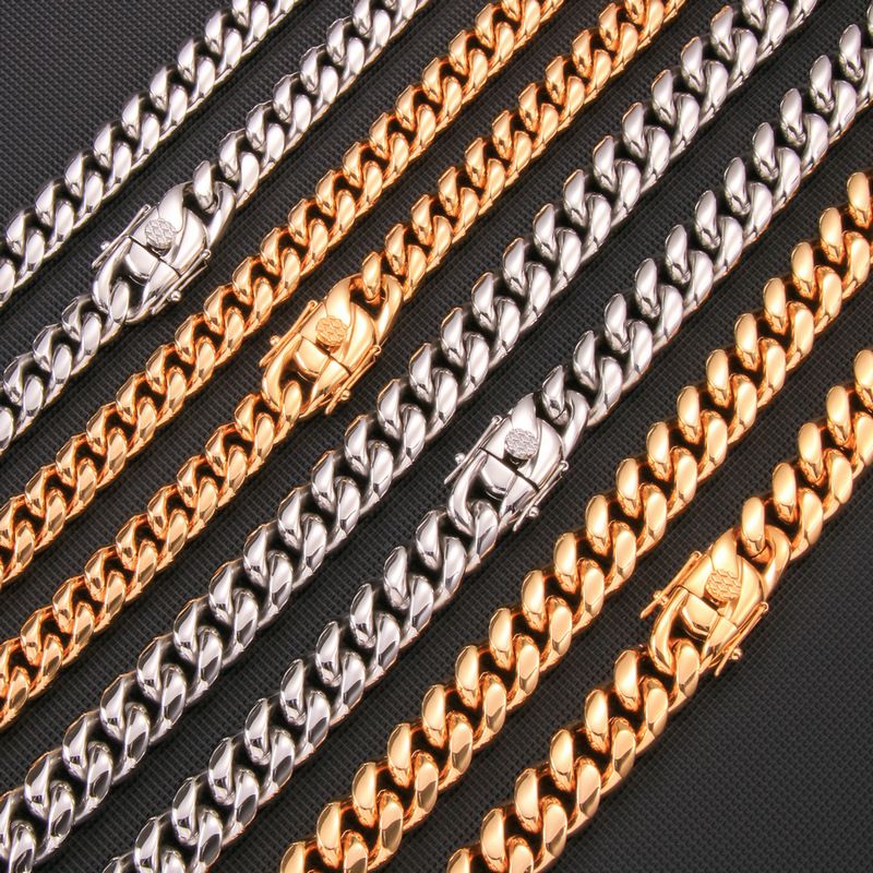 Collana cubana in acciaio inossidabile Hipster Hiphop personalizzata da uomo alla moda, in acciaio al titanio, placcata in oro 18 carati