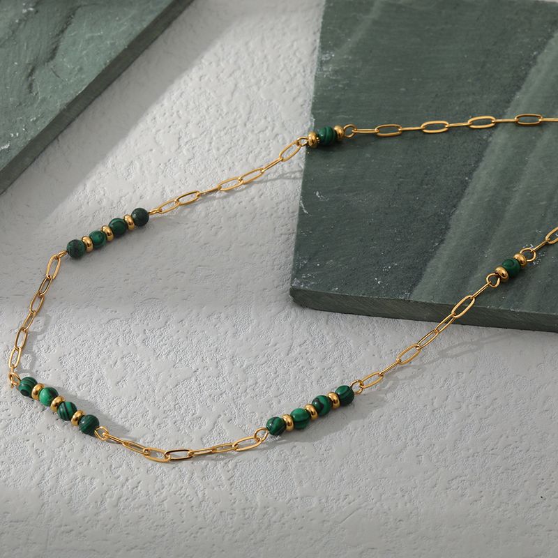 Collana da donna in acciaio inossidabile con pietra naturale placcata in oro vero, impermeabile e anti-scolorimento, design leggero e di nicchia
