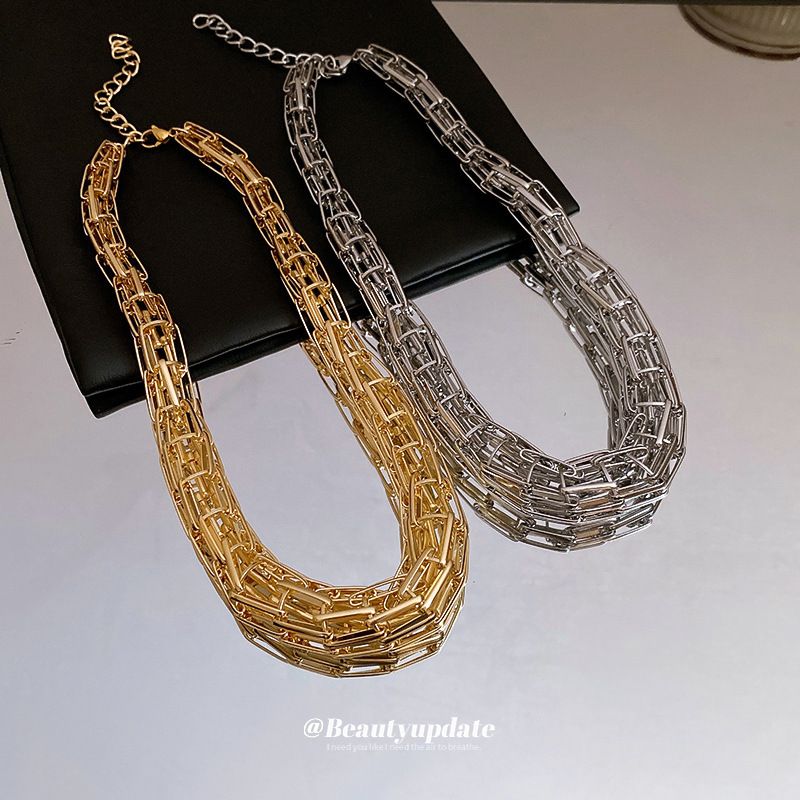 Collana di alta qualità, elegante e alla moda, con catena a clavicola, design di nicchia esagerato e spesso in metallo.