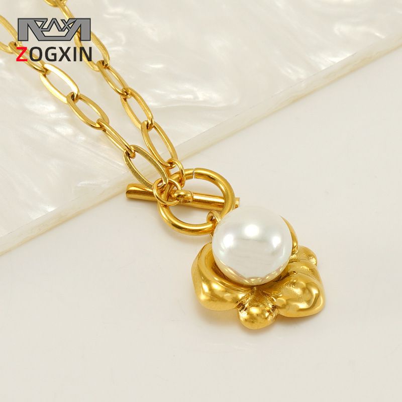Collana di perle nuova ed elegante per l'estate, per donna, con ciondolo irregolare in acciaio al titanio di alta qualità, catena per clavicola