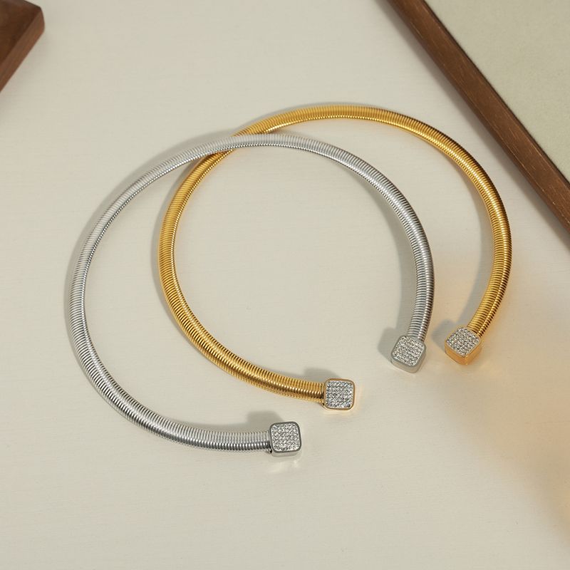 Classic Stainless Steel Open Torques Necklace For Women Zircon Blade Chain Choker Necklace Female Wedding Engagement Jewelry