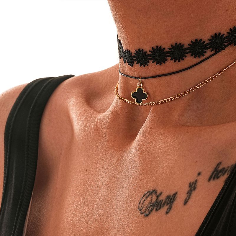Internet Celebrity Choker Necklace for Women, Collarbone Chain, Neck Jewelry, Neckband, Neck Chain, Lace 3-Layer Necklace