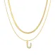 Collana girocollo con lettera iniziale N, piccola e scintillante, in acciaio inossidabile color oro, con ciondolo a strati