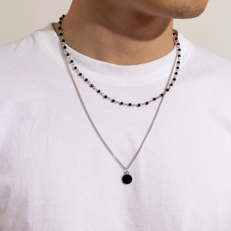 Collana girocollo separabile alla moda da uomo con ciondolo a moneta nera e catena a strati con piccole perle 2024, accessori per gioielli di moda