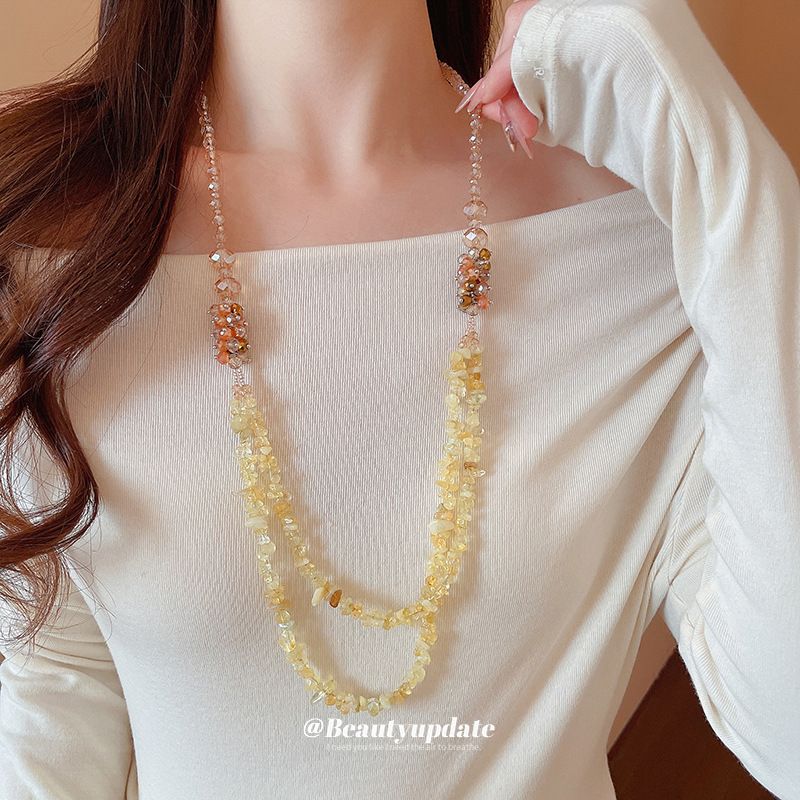 Collana impilabile a doppio strato con perline di cristallo per capelli irregolari, clavicola alla moda, maglione leggero di lusso di alta gamma