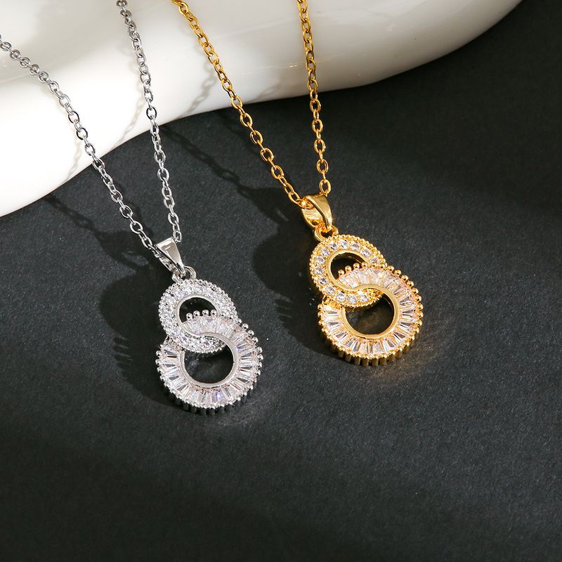 Light Luxury Temperament Double Ring Titanium Steel Necklace for Women, Unique Fashion Versatile Zircon Inlaid Figure-8 Pendant Jewelry