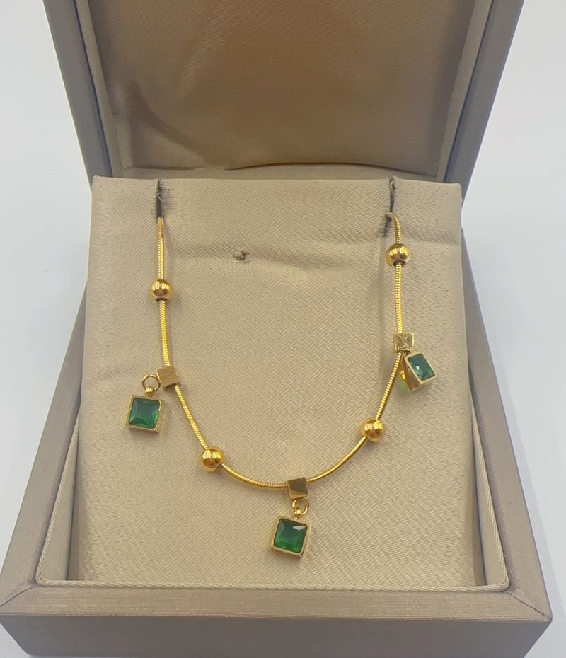 Collana in acciaio al titanio con zirconi quadrati dorati e smeraldo, design di nicchia alla moda su Instagram, in stile cinese, molto venduta