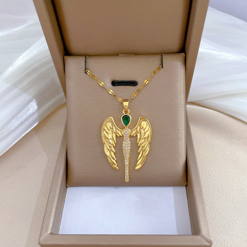 Collana in acciaio inossidabile placcato oro splendido demone angelo zirconi per regali di gioielli di temperamento del partito della regina delle donne