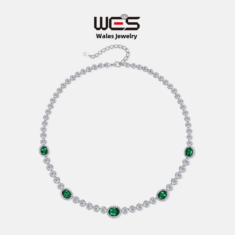 Collana in argento transfrontaliero S925 intarsio zircone femminile coltivazione Smeraldo argento vintage luce lusso stile europeo e americano spot