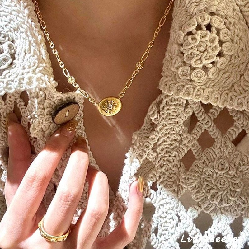 Vintage Style Brushed Star Necklace Metallic Vintage Sunflower Versatile Personality Collarbone Chain Choker
