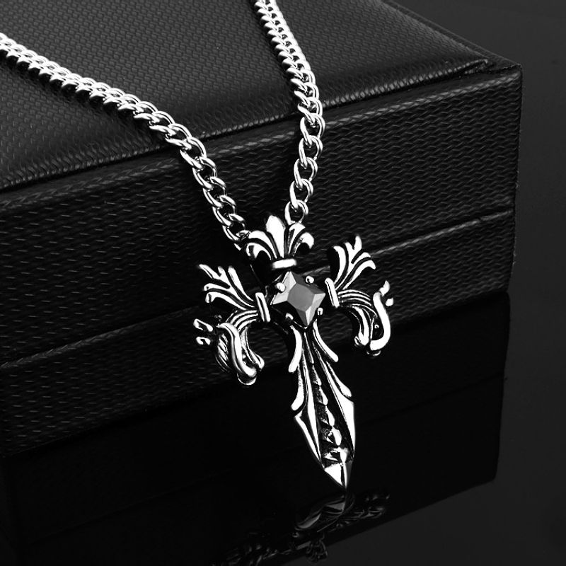 Jewelry Joker Pendant Necklace Classic Double Dragon Cross Pendant Necklace, Fashionable Retro Cross Pendant Necklace, Customized Inlaid Ruby Artificial Pendant, Gift