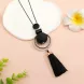 Collana lunga in stile boho retrò con ciondolo con nappa nera per donna, gioielli alla moda