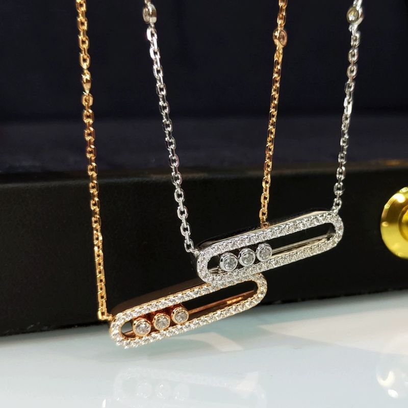 Meijia Simple Three Diamond Rolling Paper Clip Full Diamond Necklace Clavicle Chain Women's Gold Plated Silver Plated Light Luxury Luxury Luxury