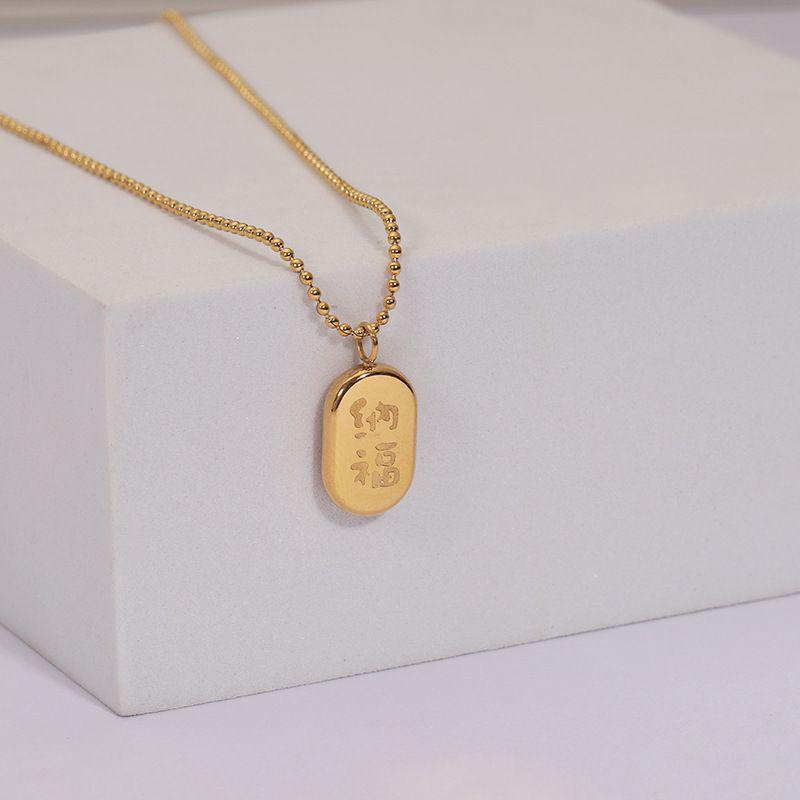 Meichen Solid Small Gold Brick Necklace with Double sided Engraving Nafu Necklace for Women Mini Round Beads Titanium Steel Lock Bone Chain