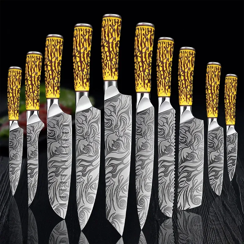 Coltello damasco laser Coltelli da cucina Taglia carne Pesce Frutta Pane Coltelli da macellaio affilati Coltelli da disosso Coltello Santoku Coltelli da chef BBQ Coltelli multiuso