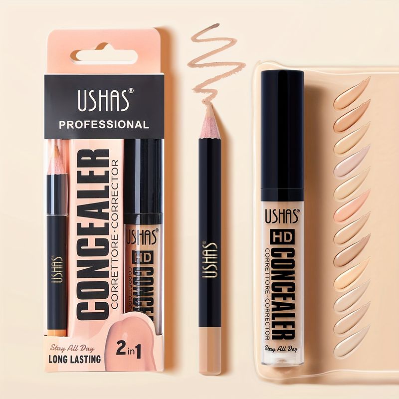USHAS concealer+concealer box combination 12 colors to brighten skin tone, mask acne and mask pores