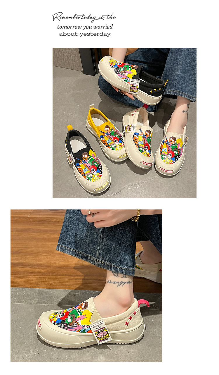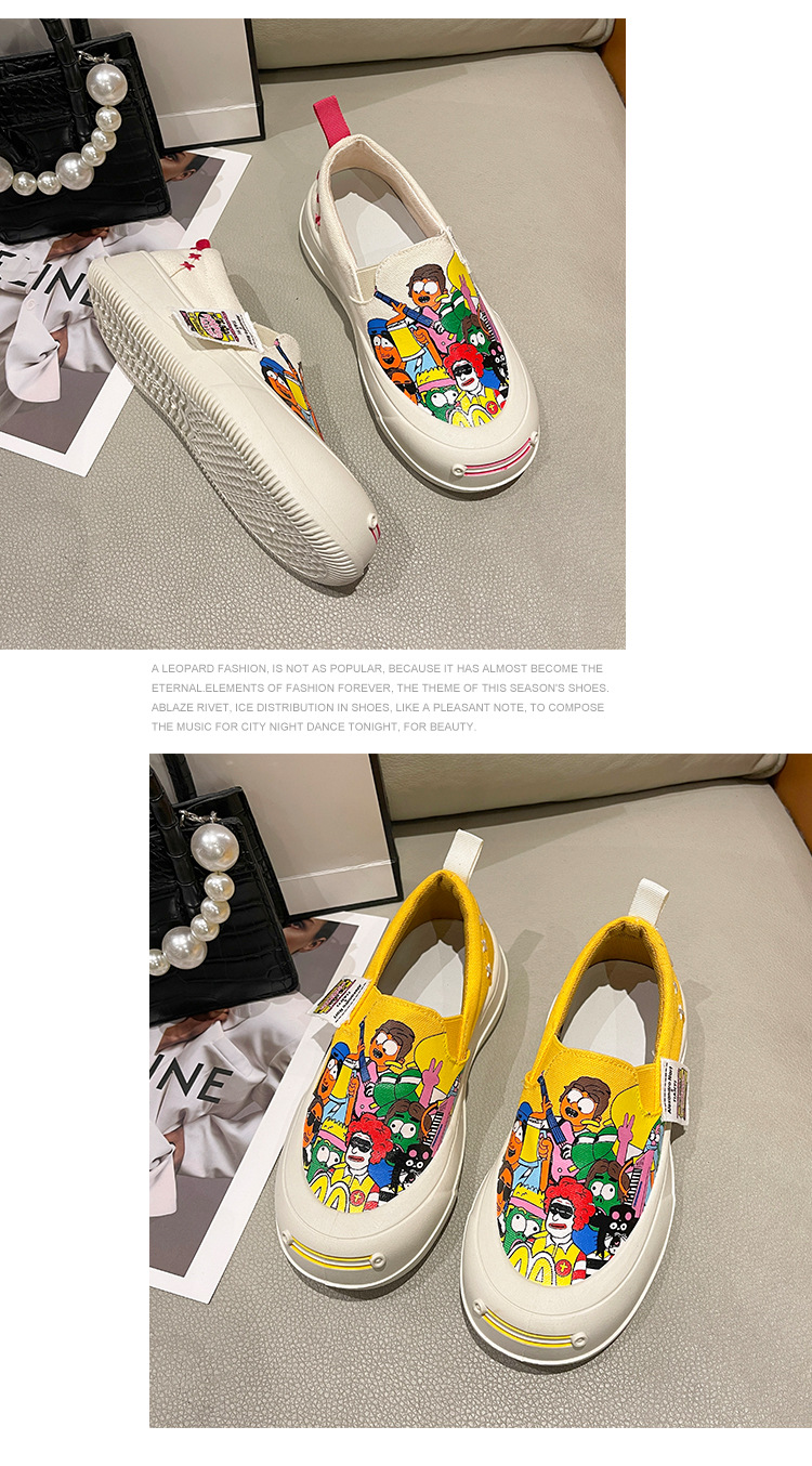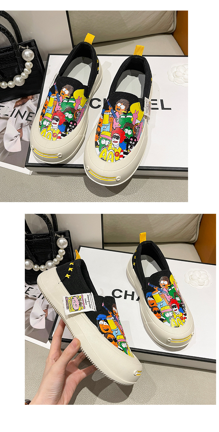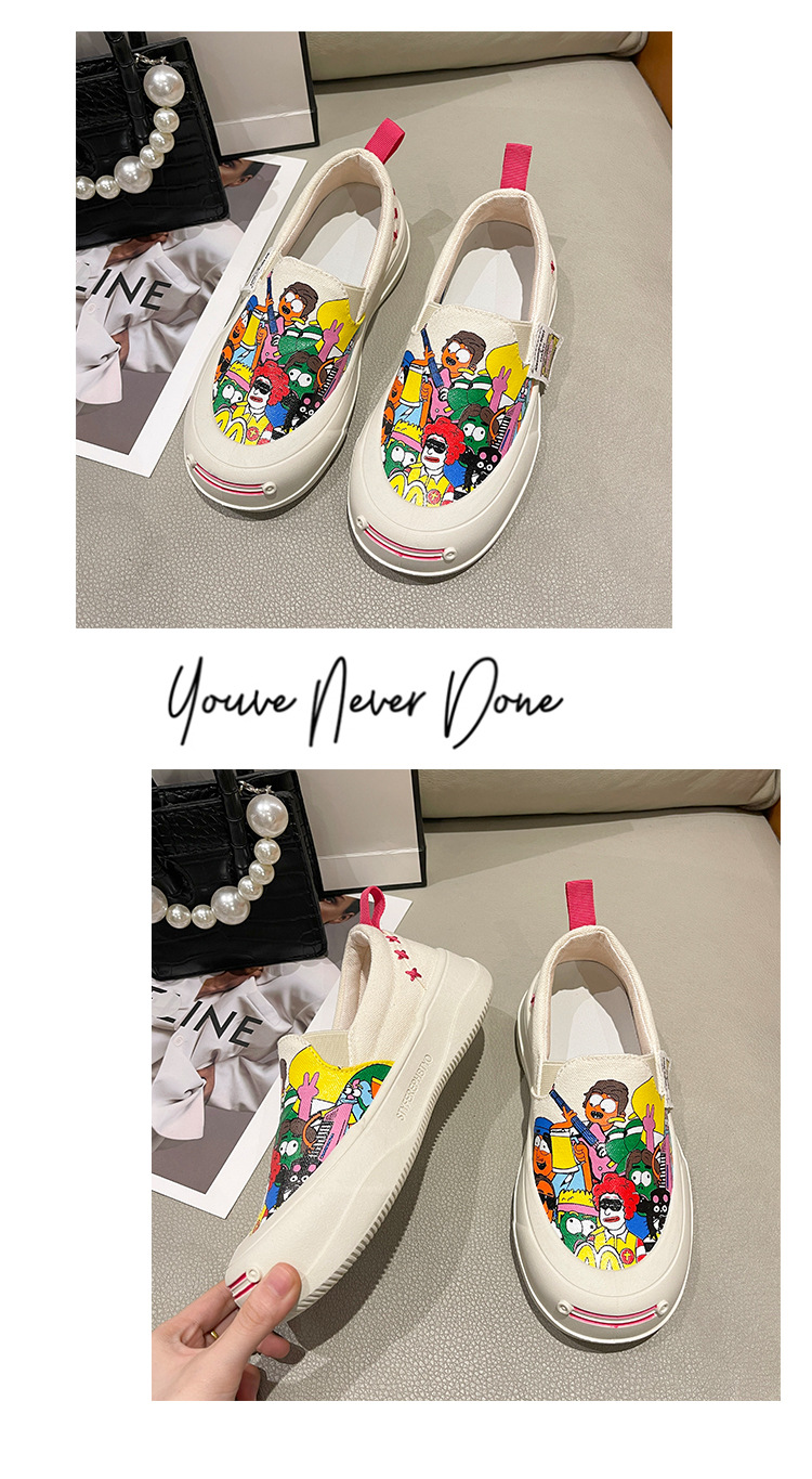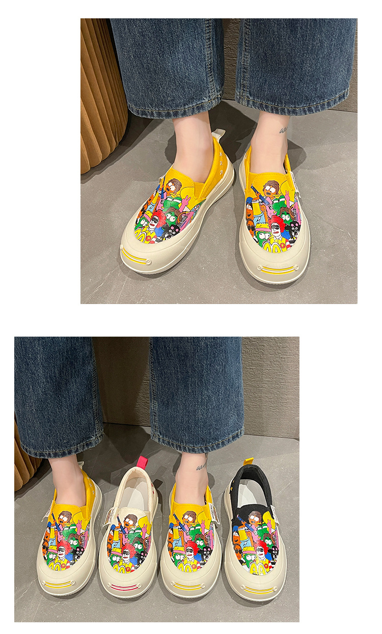 Commercio estero di grandi dimensioni tela graffiti bocca superficiale scarpe singole da donna 2023 primavera nuovo slip-on con fondo muffin a punta tonda