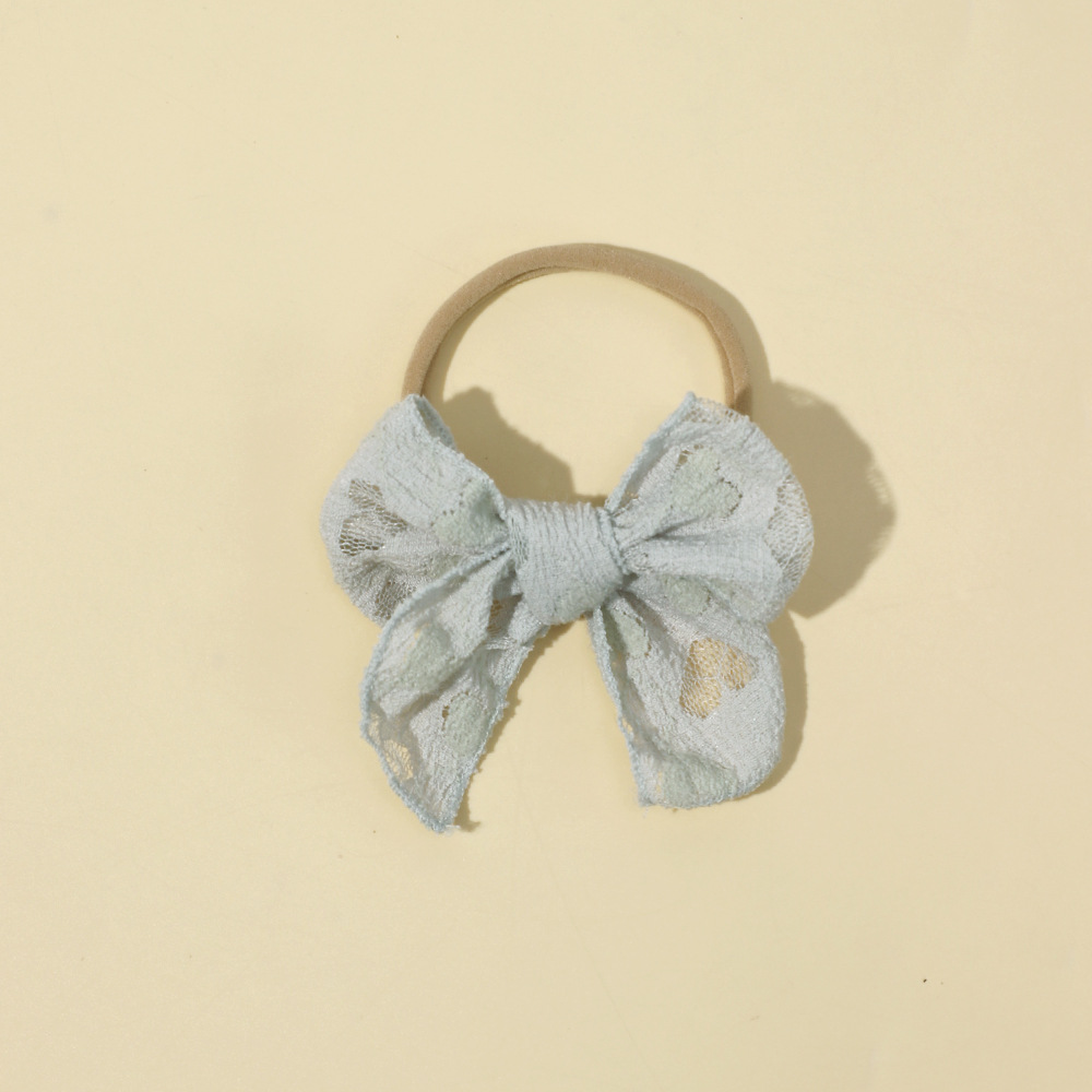 Commercio estero transfrontaliero Nuovo Accessori per capelli per bambini Europei e americani Fascia per capelli con fiocco in pizzo per bambini Fascia per capelli sottile in nylon elastico per bambini