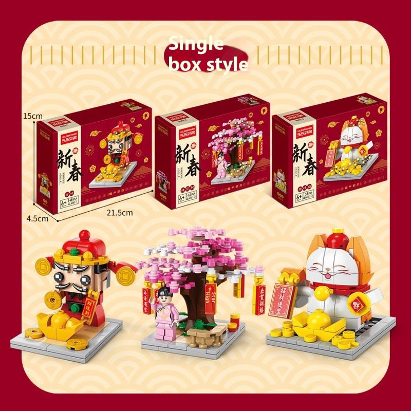 Compatibile con LEGO Cat God of Wealth Building Blocks Puzzle di piccole particelle per bambini Giocattoli Regali di Capodanno