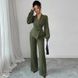 This military green set gives the classic office look a fresh twist. The tailored blouse with delicate lantern sleeves softens sharp lines, while the straight-leg trousers maintain polished professionalism.