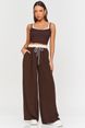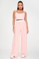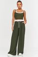 Completo casual da donna, stile corto, sexy, con bretelle a contrasto e pantaloni color block, due pezzi