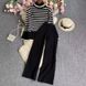 Completo casual in maglia da donna, autunno e inverno, maglione a righe a maniche lunghe, pantaloni a gamba larga, set in due pezzi lavorato a maglia per donna