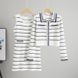Completo con abito e cardigan in maglia a righe – Due pezzi a maniche lunghe (misto viscosa-poliestere, taglia unica)
