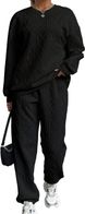 This ribbed cable-knit set blends comfort and trendiness—slouchy sweater + tapered joggers for all-day ease in crisp autumn hues.