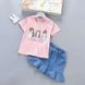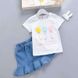 Girl's denim set, summer new style, little girl with cotton striped short sleeves and baby denim short skirt two-piece set