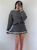 This cable-knit set gives you that "sweater weather" charm without sacrificing style. The textured sweater creates flattering shadows to slim your silhouette, while the contrast-color skirt adds a playful pop.