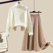 ✔ Slimming Silhouette: Oversized sweater balances with A-line skirt to create hourglass illusion