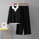 Completo da donna con polo casual in maglia e pantaloni dritti e comodi - Pullover testurizzato a righe con pantaloni comodi per l'ufficio e il fine settimana