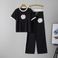 Completo da donna in maglia alla moda, estivo, con scollo rotondo, modello Camellia, a maniche corte, con elastico in vita, pantaloni casual, completo da due pezzi