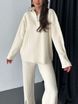 Completo da donna in maglia con cerniera - Tuta pantalone jogger a coste con collo alto (beige/nero/viola, S-5XL)