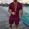 Completo da uomo composto da t-shirt a maniche corte e pantaloncini in maglia a nido d'ape - Collo rotondo marrone con coulisse in vita, completo casual in due pezzi